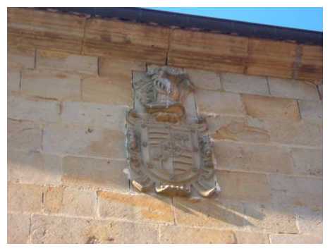Le 16 mai 1630 ont comparu à Bárcena de Cícero devant Pedro de Venero, écrivain public inscrit à la Junta de Cesto, Pedro de Valle de Valle, maître tailleur de pierres, et Juan de Ortega de Pereda, habitants de Bárcena, afin de signer entre eux un contrat dont le premier point est le suivant : "Ont dit être d'accord pour que le susnommé Pedro de Valle se charge de la fabrication de la réalisation en pierres de taille d'une maison que le sieur Pedro de Palacio Arredondo, clerc résidant dans le Royaume de Galice et originaire de Bárcena, souhaite faire construire dans les délais, conditions et dispositions fixés dans ce document aux termes d'un accord souscrit entre eux par devant moi et auquel ils se remettent". Par conséquent, ayant pris connaissance de ces conditions, les deux maîtres tailleurs de pierres déclarent : "Convenir de faire et fabriquer pour moitié de la manière convenue dans ce document toutes les pierres de la maison pour un prix de quatre mille huit cents reales, sans en modifier quoi que ce soit et les partageant en deux et en réalisant le travail de la même manière". Don Antonio de Palacio Arredondo était clerc à l'époque de ce contrat et vivait dans le Royaume de Galice. Une légende inscrite sur la façade de la maison-tour qu'il a fait construire nous indique qu'il a terminé sa carrière comme Trésorier et Grand Chapelain de la Cathédrale d'Avila. La construction a été conçue comme une tour carrée dont la façade de pierres de taille comporte peu d'ouvertures sur l'extérieur. Au rez-de-chaussée, au centre de la façade, on observe une porte à linteau droit et une fenêtre ; au premier étage, c'est une porte-fenêtre qui occupe le centre de la façade tandis que la fenêtre du second étage, également centrée, est flanquée de deux écus. Les deux écus sont décrits comme suit : Château maçonné (c'est-à-dire dont les joints des pierres sont fortement marqués) à double rangée de créneaux, à la fenêtre duquel se penche une dame ; de chaque côté du château se dresse un lion. L'écu est bordé de huit coquilles Saint-Jacques. Les couleurs de ces armoiries sont les suivantes : TTour d'argent à fenêtres d'azur (bleu) sur champ de gueules (rouge), lions d'argent et bordure bleue avec coquilles Saint-Jacques d'argent. Tour d'argent à fenêtres d'azur (bleu) sur champ de gueules (rouge), lions d'argent et bordure bleue avec coquilles Saint-Jacques d'argent. Ces armoiries sont celles de la lignée d'Arredondo, originaire du lieu du même nom dans la vallée de Ruesga. L'écu décrit représente une légende selon laquelle la dame penchée à la fenêtre du château est la Dame d'Ausonia, enfermée dans un château gardé de deux lions et qui fut sauvée par un chevalier de la lignée d'Arredondo, prouesse en mémoire de laquelle il adopta ces armoiries. Le second écu est écartelé. Au centre de l'écu se trouve un écusson -un autre petit écu- représentant une croix fleurdelisée. La bordure générale est formée de huit croix de Malte. Cet écusson, le premier blason de Don Antonio, appartient à la lignée des Palacio ; on en retrouve de nombreuses variantes du côté de Trasmiera et dans les régions voisines. Entre les deux écus de la façade, sous la mention "Victor", une légende indique : "DON ANTONIO DE PALACIO Y ARREDONDO, TRESORIER ET GRAND CHAPELAIN DE LA CATHEDRALE D'ÁVILA". Un bâtiment de taille plus modeste est adossé à la maison-tour. Il s'agit d'une construction de deux niveaux à laquelle on accède par un arc en plein cintre. Elle dispose d'une fenêtre au rez-de-chaussée et de deux autres au premier étage. |